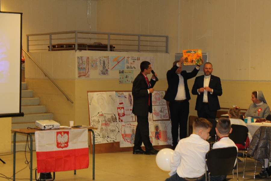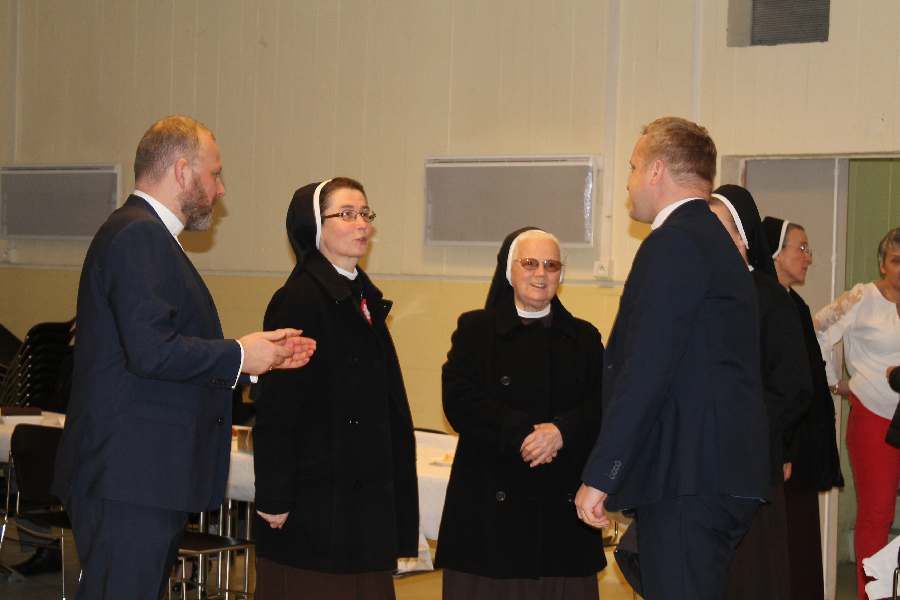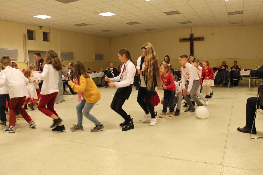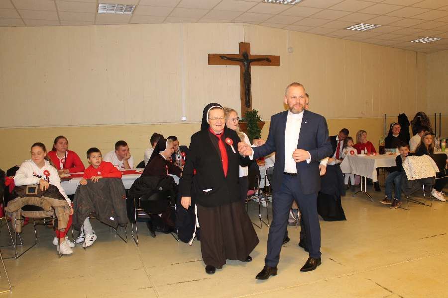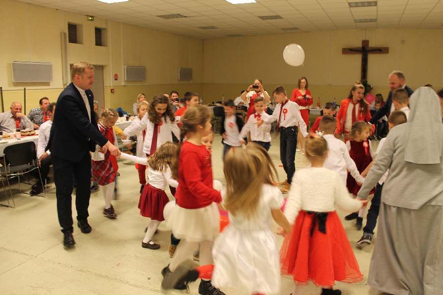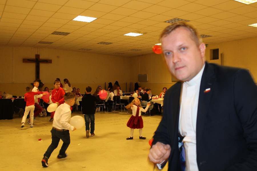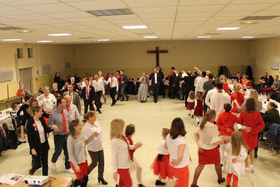 Polacy mieszkający we Francji- parafia PMK w St Denis- z wyprzedzeniem świętowali Niepodległość naszej Ojczyzny. Dzieci i rodzice oraz dziadkowie przybyli ubrani na biało-czerwono. Przy wejściu każdy otrzymał biało czerwony medal-kotylion. Torty też były z godłem Polski i flagą. Rozpoczęto spotkanie modlitwą za naszą Ojczyznę i tych co za nią życie oddali, następnie za nasze rodziny w Polsce i za Francję w której żyjemy. Było obecnych dwóch polskich księży Chrystusowców, ks proboszcz Zbigniew Wcisło, ks. Mariusz Sokołowski i S. Małgorzata oraz Siostry Serafitki. Na rowerze przyjechał tez ks.proboszcz z St Denis z parafii, która służy Polakom za miejsce modlitwy. Śpiewano pieśni patriotyczne i wszyscy razem zatańczyli Poloneza z różnymi figurami, klasycznie. Rodziny poprzynosiły przeróżne ciasta a jedna z Pan przygotowała tradycyjny bigos, którym wszyscy się najedli dosyta. Siostry z Montmorency przywiozły też pana Józefa Wysockiego 93 lata, który przebywa w domu starców. Był szczęśliwy spotkać się ze swoimi parafianami. Przeprowadzono konkurs prac dziecięcych, rysunki na temat: Polonia semper fidelis. Wieczór zakończono tańcami towarzyskimi. Widać było na sali rodziny młode z licznymi dziećmi. Mowna było wyczuć tęsknotę za krajem i rodzina w Polsce. Dzieci świetnie odpowiadały na zadawane pytania z historii Polski. Radość i organizacja wyjątkowa mówiły o tym, ze duszpasterstwo na emigracji rozwija się dobrze, Bogu niech będą dzięki za wszystko.